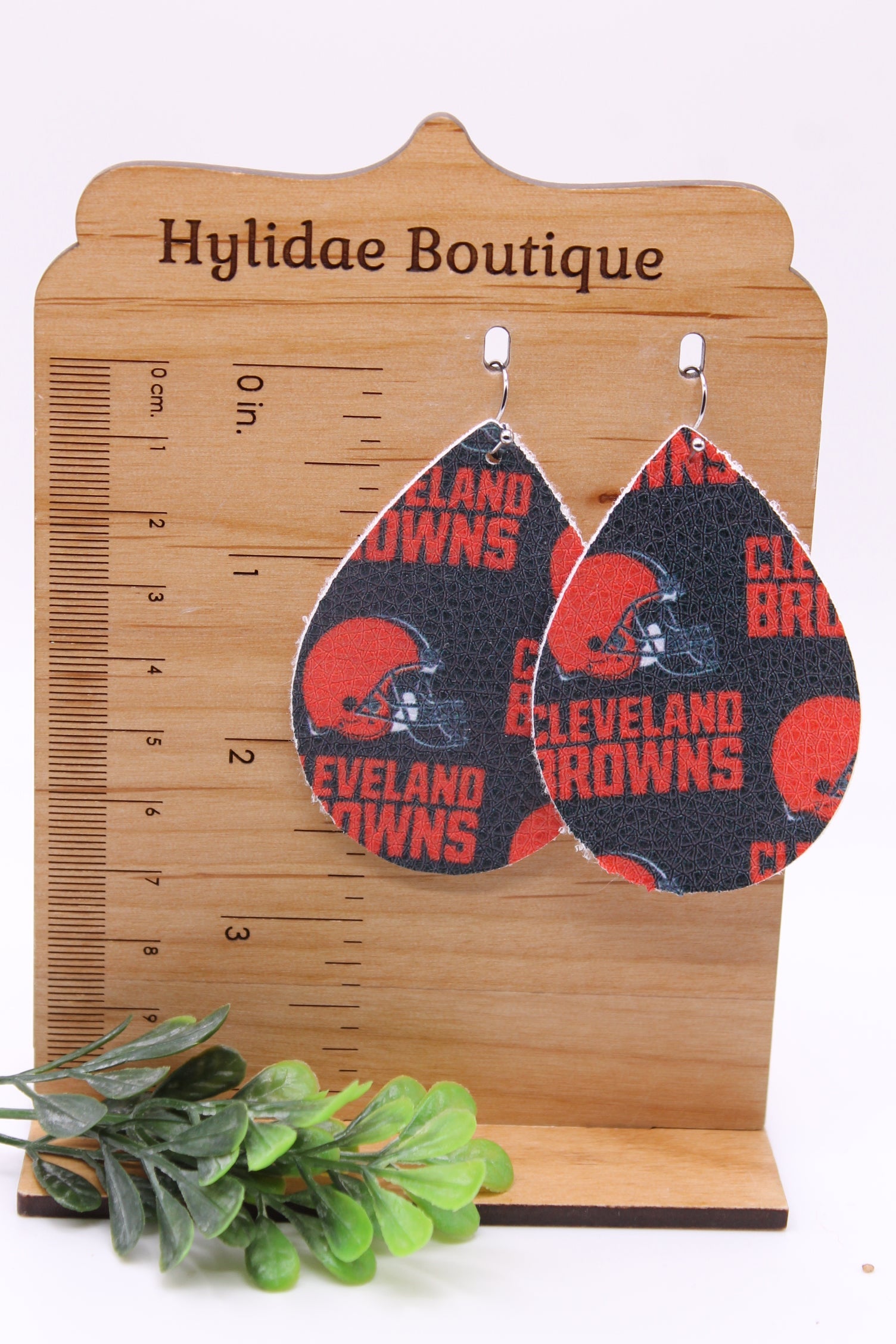 Browns Football || Faux Leather Teardrop Dangle Earrings || Single-Sided
