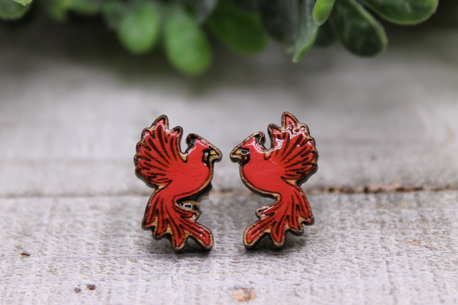 Cardinal || 12mm Glass Stud Earrings || Hypoallergenic