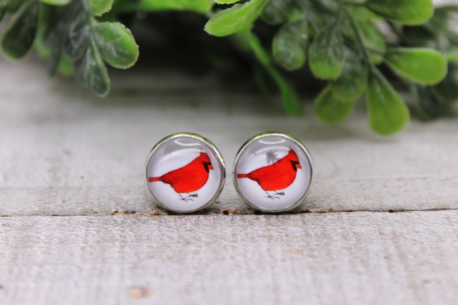 Cardinal || 12mm Glass Stud Earrings || Hypoallergenic
