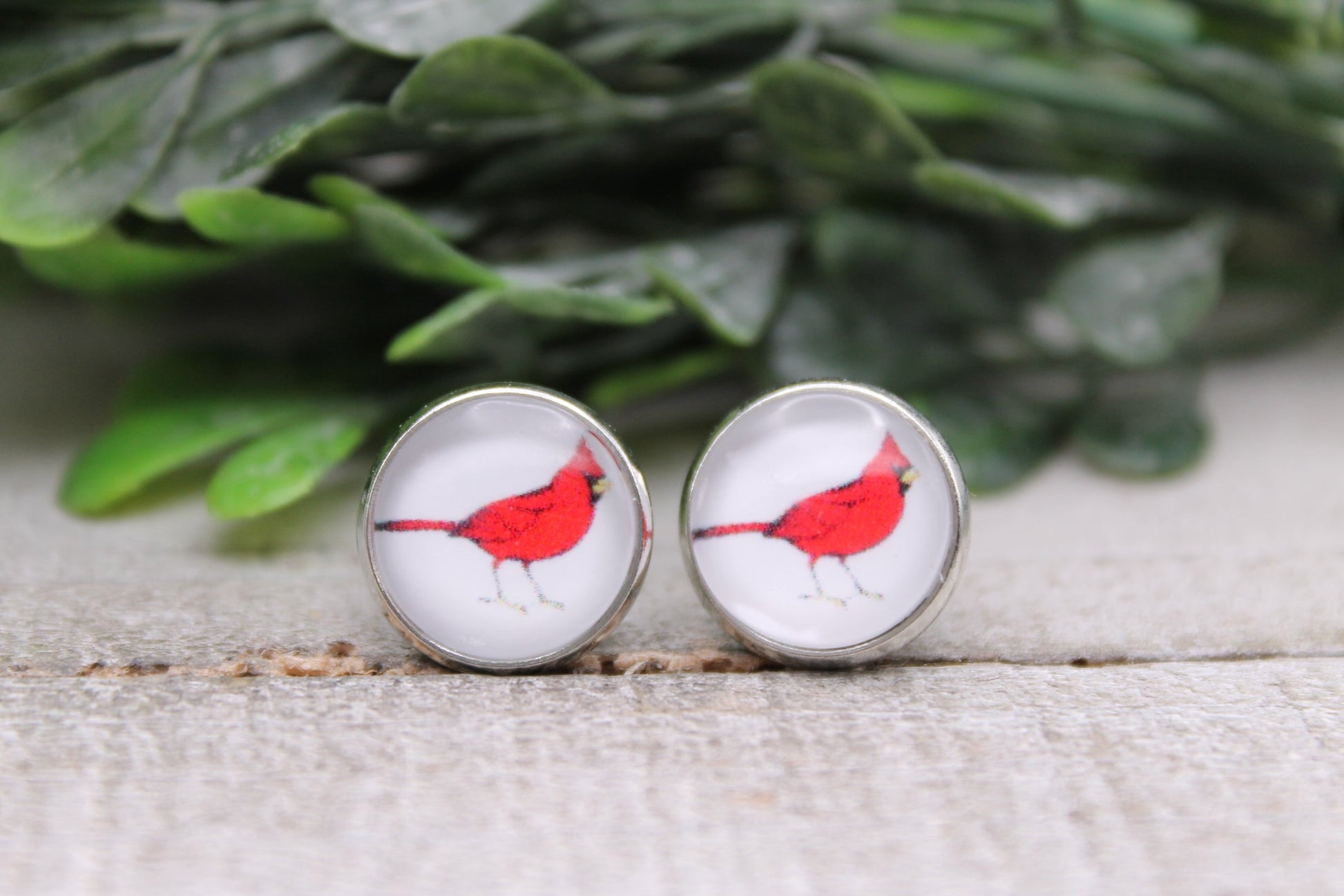Cardinal on White || 12mm Stud Earrings || Hypoallergenic