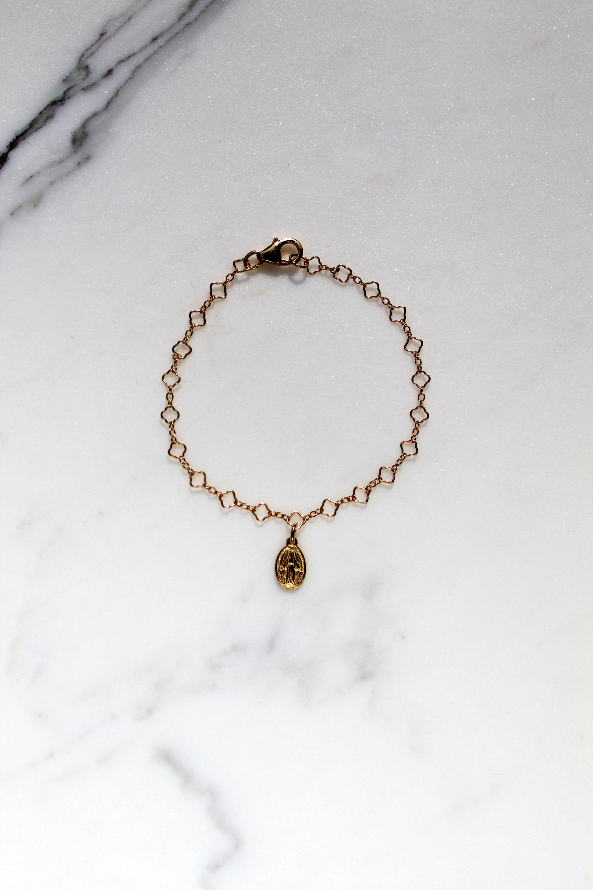 This Miraculous Medal Floral Bracelet is a timeless accessory and a wonderful gift for any child, serving as a lovely reminder of their faith and a stylish addition to their jewelry collection.